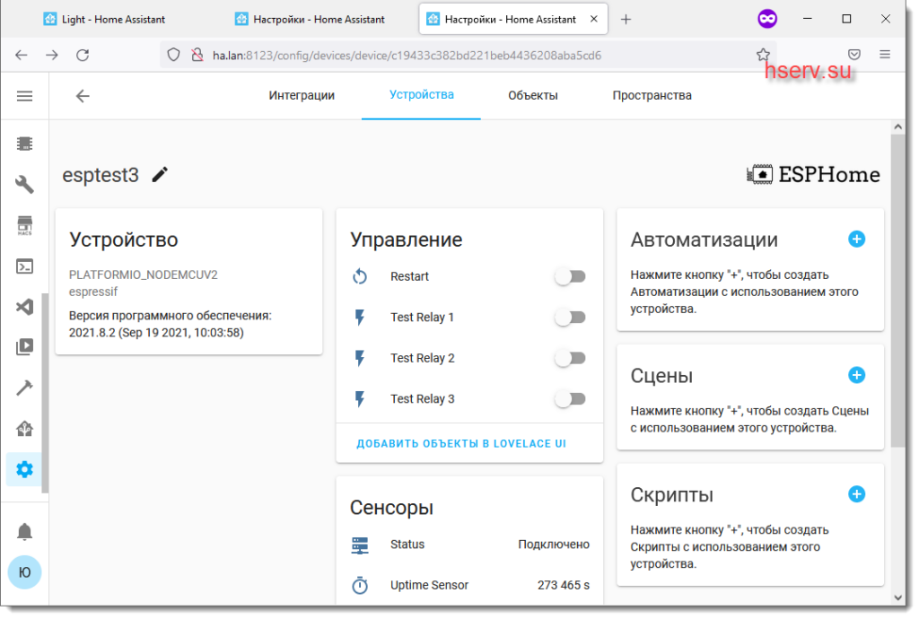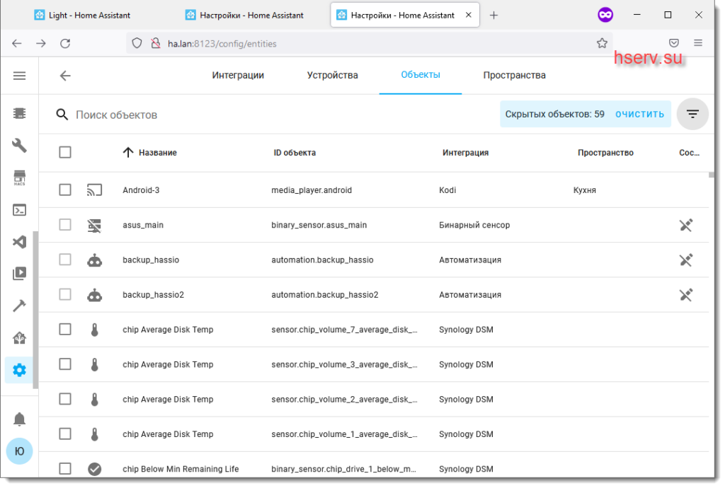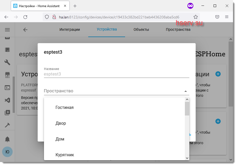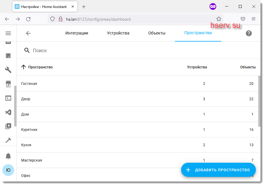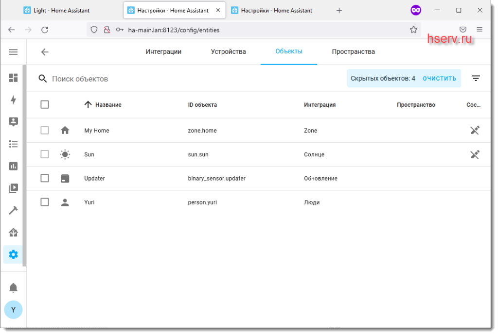 Основными единицами в Home Assistant являются Home Assistant, Устройства, Объекты и Пространства. Доступ к ним можно получить через Настройки -> Home Assistant