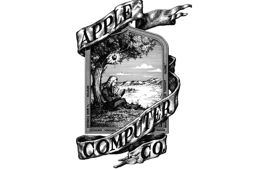 Наверное, сегодня нет человека, которому было бы незнакомо фирменное надкушенное яблоко Apple. Однако изначально на эмблеме компании был изображён Исаак Ньютон, сидящий под деревом, на ветке которого висит пресловутое яблоко. Данный рисунок был создан Роном Уэйном, но век картинки был недолог из-за обилия мелких деталей, которые не позволяли товарному знаку выглядеть стильно и лаконично. Вскоре логотип был заменен на радужное яблоко (в 1976 году), которое и осталось неизменным по сей день. Лишь его окраска периодически претерпевает изменения на чёрный, голубой или монохромный варианты. В корпорации восхищаются Исааком Ньютоном, одним из величайших умов во всемирной истории, поэтому эмблема Apple символизирует своеобразную дань уважения и памяти великому учёному. Кстати, первый компьютер карманного образца носил название Apple Newton.