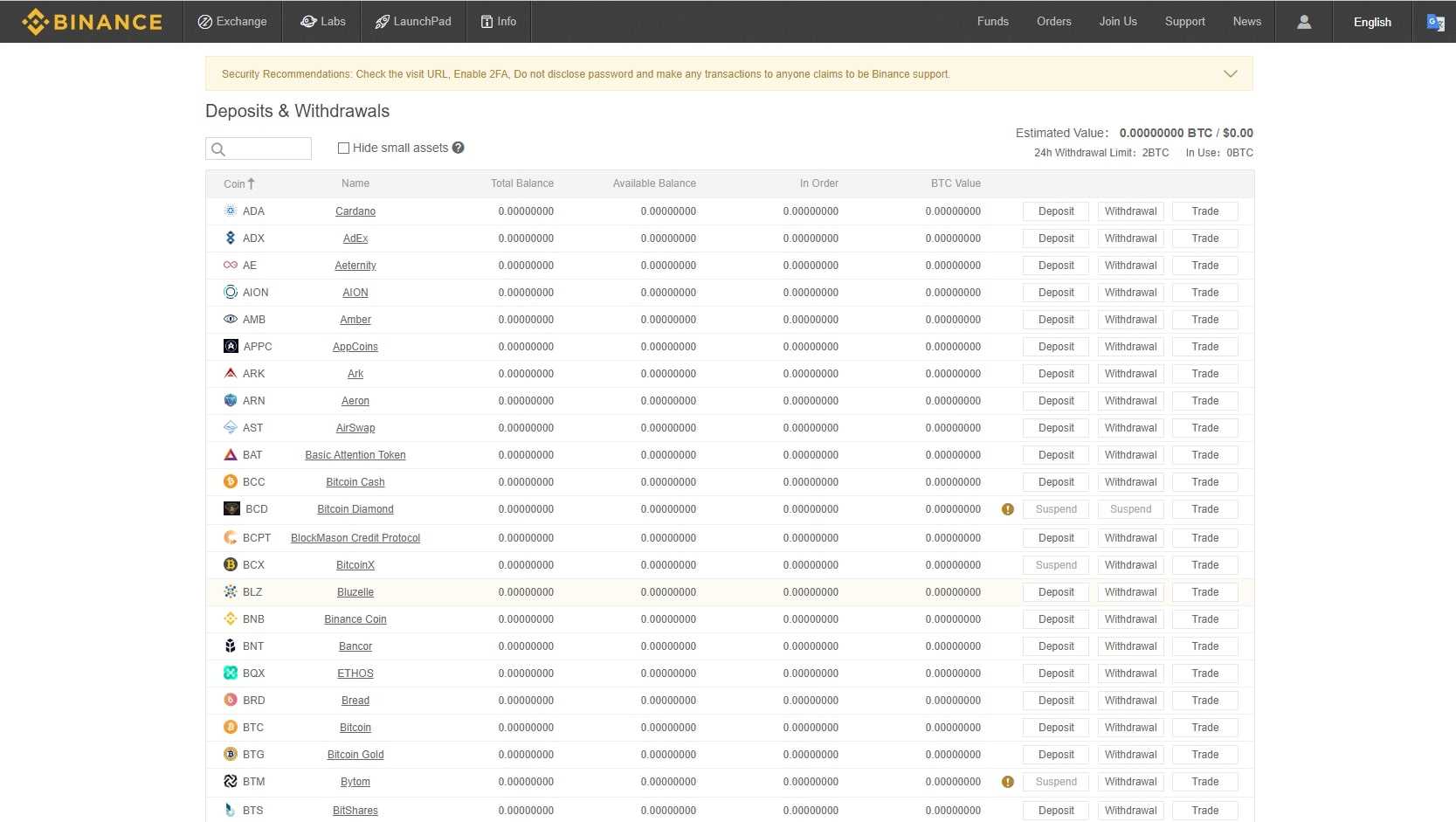 | Binance Coin | 0.002 (BEP2) | 0.001 BNB (BEP2) |