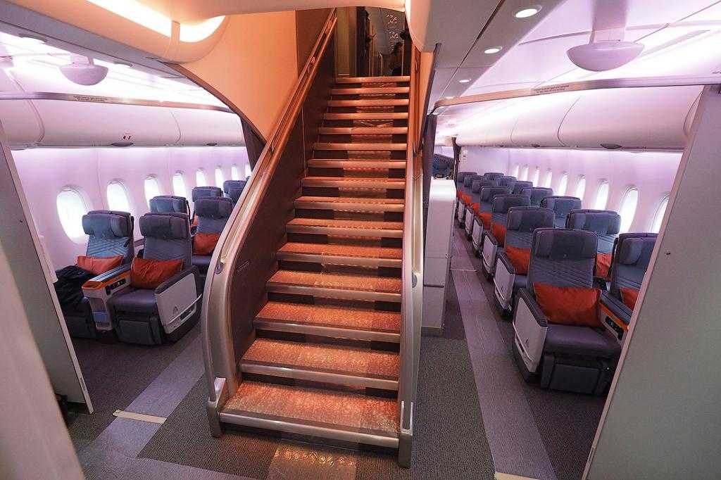 Вместимость данного самолета зависит от компоновки и наличия разных классов комфортности. Варьируется это количество от 320 до 526 человек. Рассмотрим общую схему салона и лучшие места в нем.