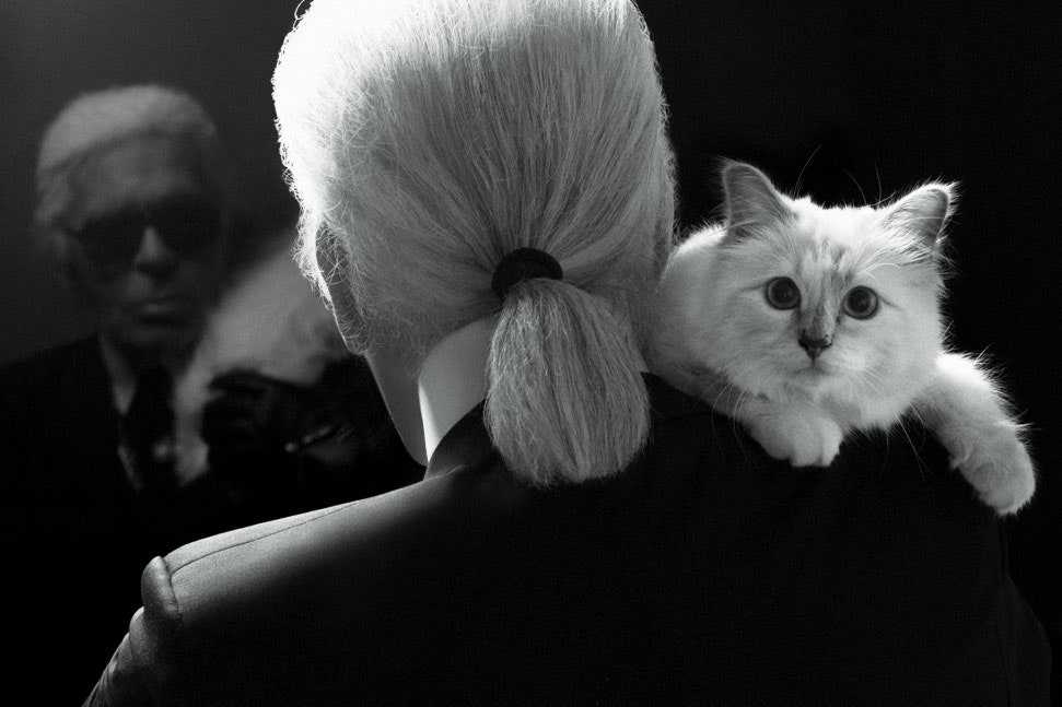Карл Лагерфельд с кошкой Шупетт