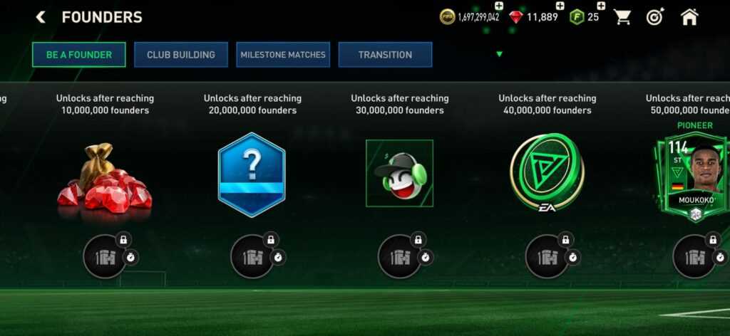 Не забудьте выполнить описанные выше действия после входа на мероприятие Основателей в FIFA Mobile 23. Только после того, как вы зарегистрируетесь в качестве Основателя, откроется следующая вкладка мероприятия. Поэтому крайне необходимо зарегистрироваться в качестве Основателя. Помимо регистрации в качестве Основателя, вы также получаете следующие важные награды: