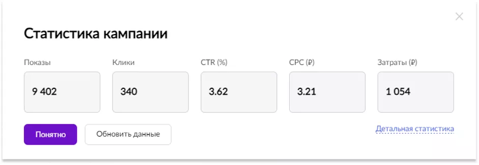 Вся рекламная статистика, которую предоставляет Wildberries по данному типу рекламных кампаний: