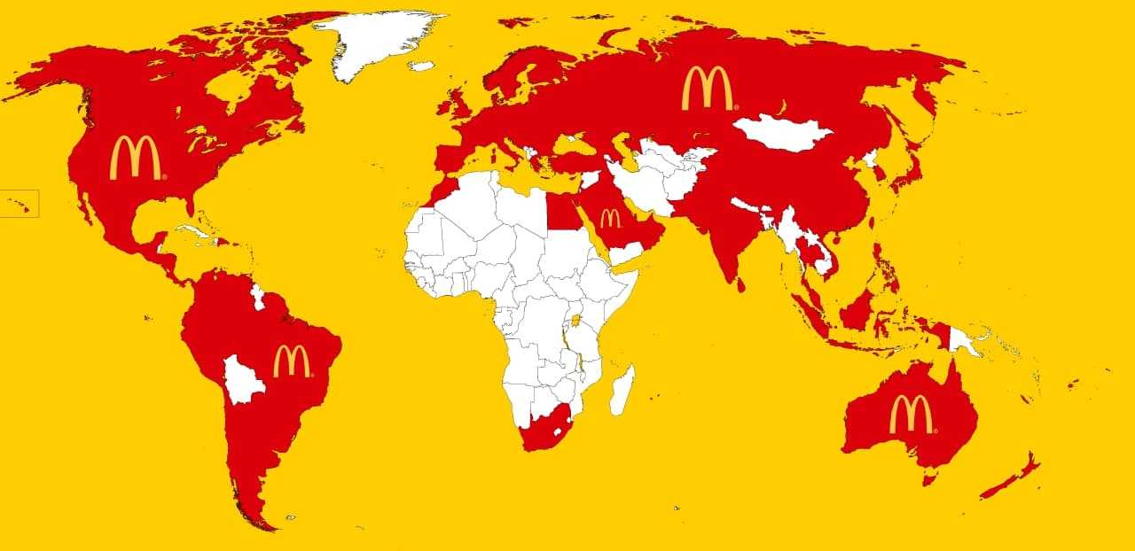 Карта присутствия ресторанов «Макдоналдс» в мире