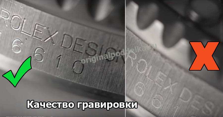 Внимательно рассмотрите циферблат. Все надписи на циферблате выгравированы, выглядят четко и безупречно. Расстояние между буквами и цифрами одинаковое. Если есть малейшая неровность или ошибка в написании – это фальшивка.
