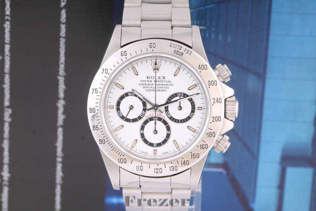 Daytona – серия, специально разработанная для гонок в 1963 году. Одна из самых популярных моделей в магазине FrezerHouse. Считается лучшим спортивным хронографом на протяжении более полувека. С этими часами вы сможете не только узнавать время, но и измерять скорость – не хотите ли проверить спидометр на своем автомобиле?