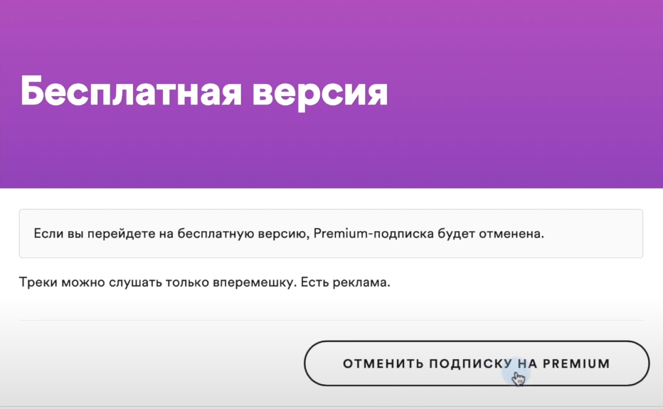 Выберите вариант со Spotify и пункт отмены. Если нужного пункта нет, значит, Премиум-подписка уже прекращена.