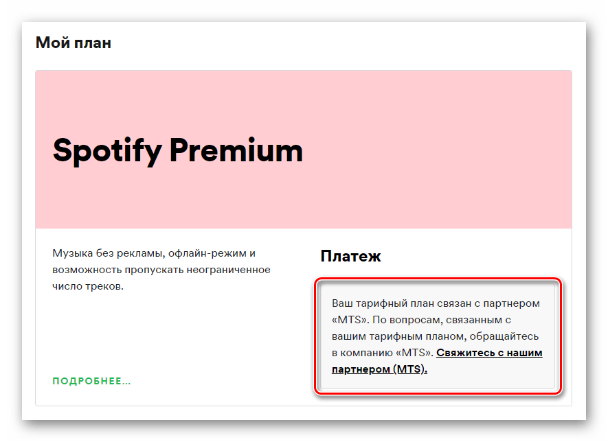 Spotify на сегодняшний день не позволяет оформлять Premium-доступ на мобильных устройствах, непосредственно через App Store или Google Play Маркет – эта возможность реализована только на официальном сайте сервиса. Однако иногда подписка может быть подключена через так называемого партнера – оператора связи, провайдера или какую-то компанию.