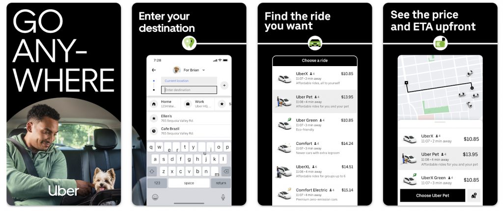 - UberPool: Allows riders to share rides with others traveling in the same direction, making it a cost-effective choice.