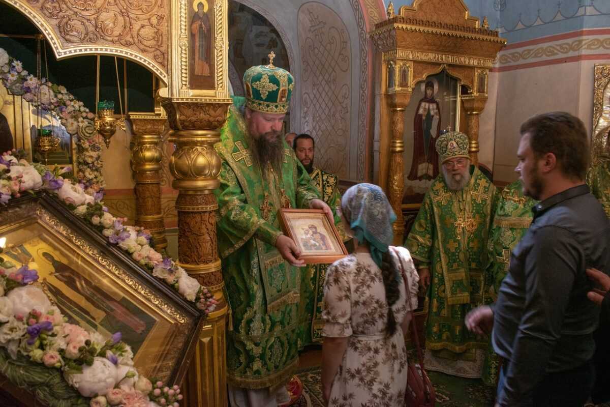 День Петра и Февронии. Муром. После богослужения у мощей святых семейные пары епископ благословляет иконой