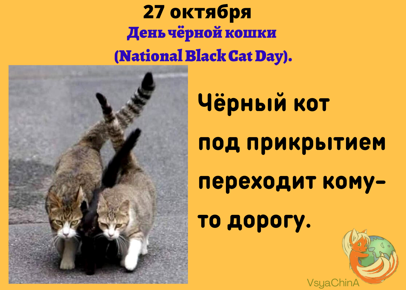 Милые и прекрасные создания, в силу своей чёрной окраски шерсти, издревле приравниваются к одним из представителей «тёмных сил». За это многие недолюбливают чёрных кошек, а их символы используются в таких праздниках, как Хэллоуин. Чёрных котят мало кто захочет взять домой. В связи с этим в этот необычный праздник жители Великобритании и Северной Ирландии проводят различные мероприятия по призыву дать дом черношёрстным пушистикам.