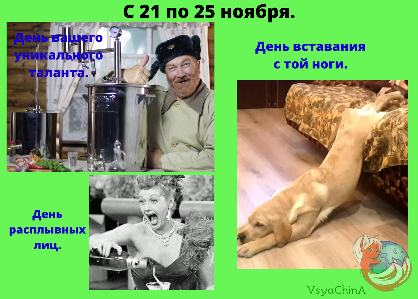 Удивительные праздники с 21 по 25 ноября. День вставания с той ноги, День угощения домовых молоком, День расплывных лиц и другие здесь.