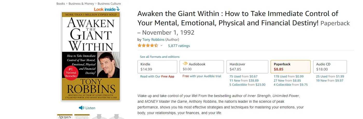 Это, несомненно, одна из тех книг, которые «преобразят вашу жизнь». Тони начинает книгу с трех шагов к успеху, а затем вдохновляет и помогает читателю радикально изменить свою жизнь.