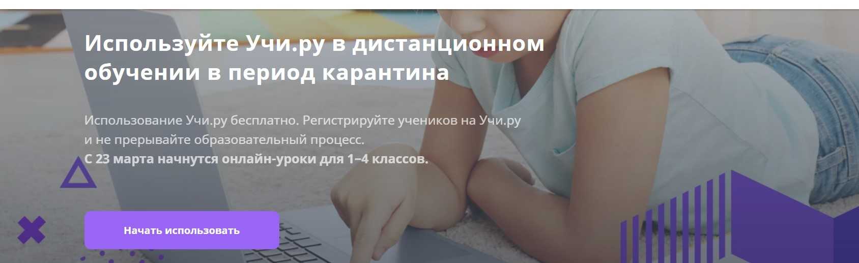 Учи.ру предлагает бесплатные онлайн-уроки для школьников во время карантина. Есть возможность зарегистрироваться как родитель или педагог и пользоваться всем учебным функционалом портала.