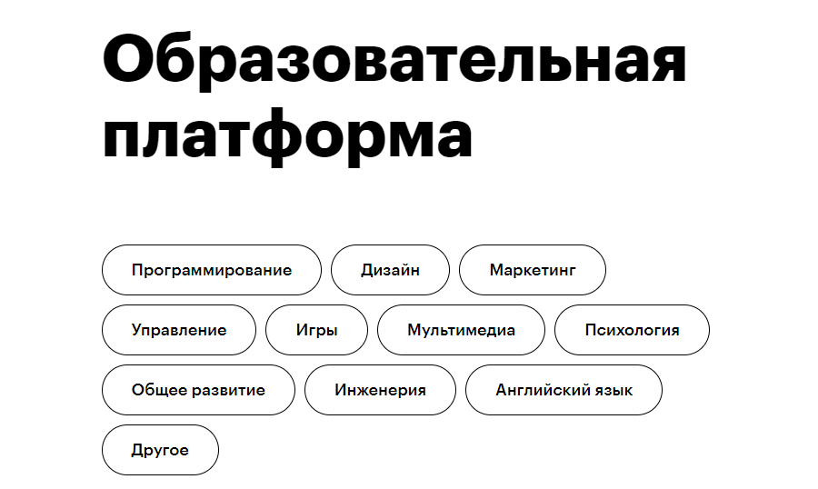 Каждый из предметов содержит большой список курсов, относящихся к разным темам. Например, одна из его категорий Компьютерные Науки имеет курсы по различным технологиям, а именно: Azure, блокчейн, программирование на C и т. д.
