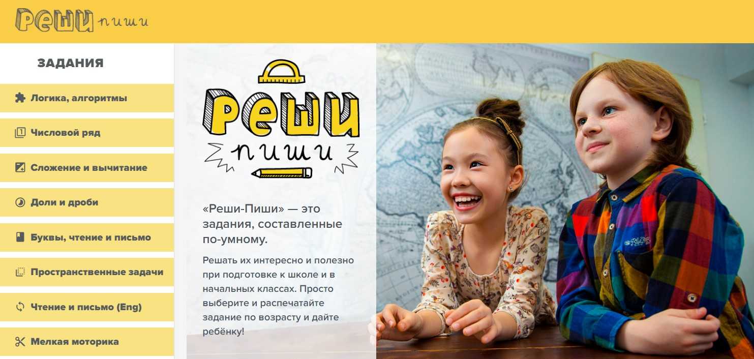 Сайт Реши-Пиши предлагает задания на логику, пространственное мышление, по математике, чтению, английскому для ребят 5-9 лет. Решать их не только полезно, но и супер интересно. Родителям нужно только выбрать задание, распечатать и дать ребёнку. Чадо занято увлекательной учёбой, а родитель может выдохнуть и заняться своими рабочими задачами.