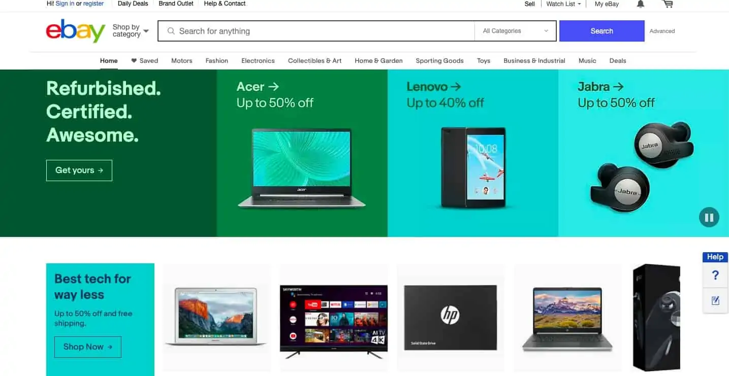 Today eBay dominates categories including electronics, cars, clothes, collectibles, and more, through auctions, direct from brands, or through verified sellers, with free shipping on many items.