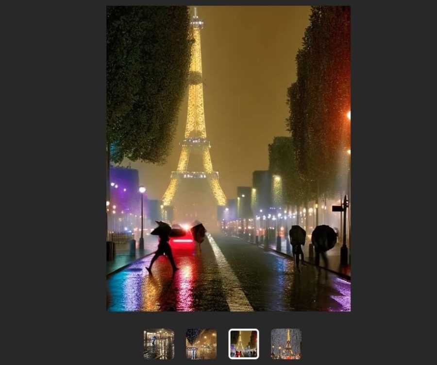 Над кнопкой Create, запускающей процесс генерации, закреплен и ползунок Advanced Settings, отображающий дополнительные параметры (например, количество итераций и итоговый размер холста – широкий, мобильный или портретный). Как и в предыдущем случае, редакция блога Сергея Смирнова попытается нарисовать мрачный и дождливый Париж, скрывающийся в сумерках.