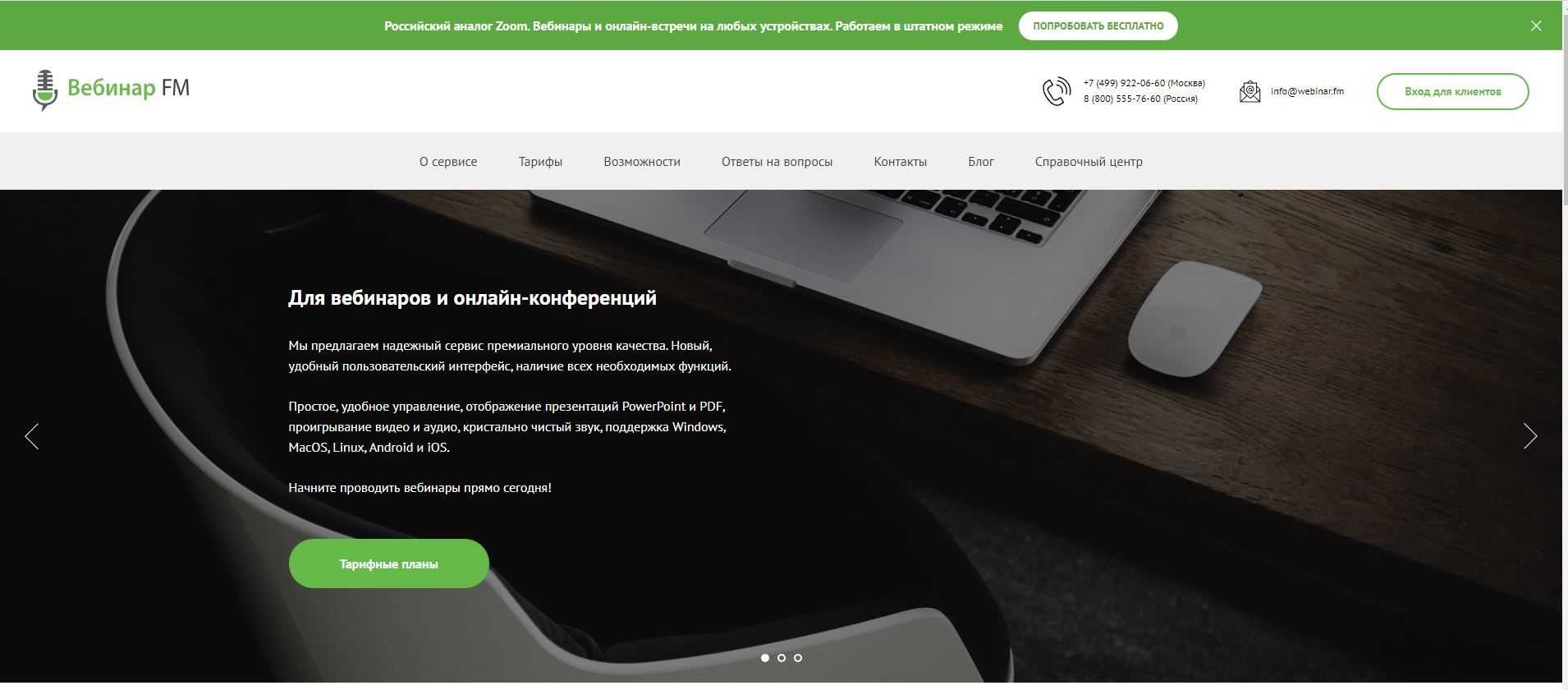 Тестовый период предоставляется на 2 недели. В рамках него можно организовать вебинар для 10 человек.