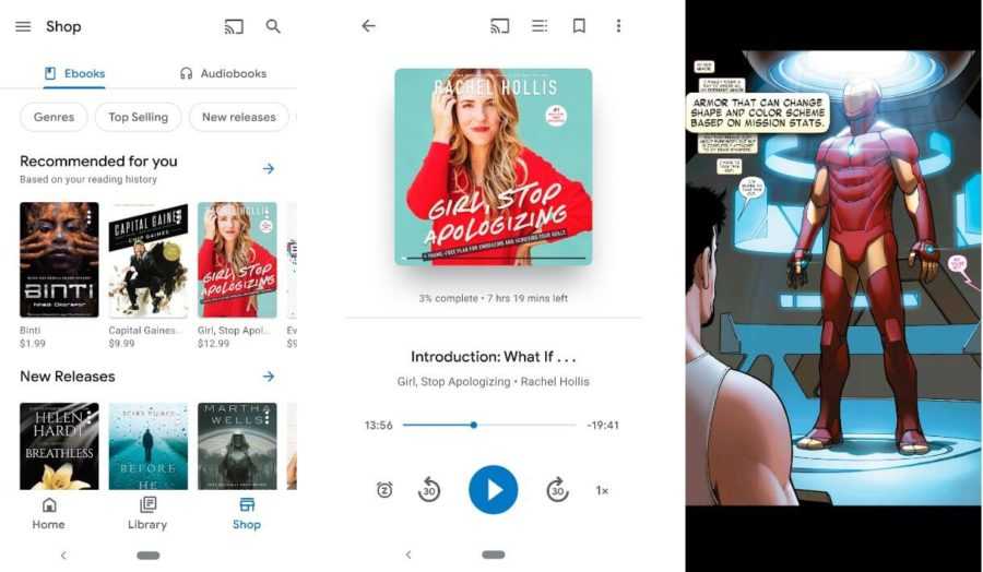 Google Play Books – популярная альтернатива читалке от Apple, доступная и на iOS, и на Android, и поддерживающая целую коллекцию дополнительных инструментов. Взять хотя бы аудиокниги – в экосистеме Apple для воспроизведения озвученных книг с вероятностью в 99% понадобился бы специальный плеер.