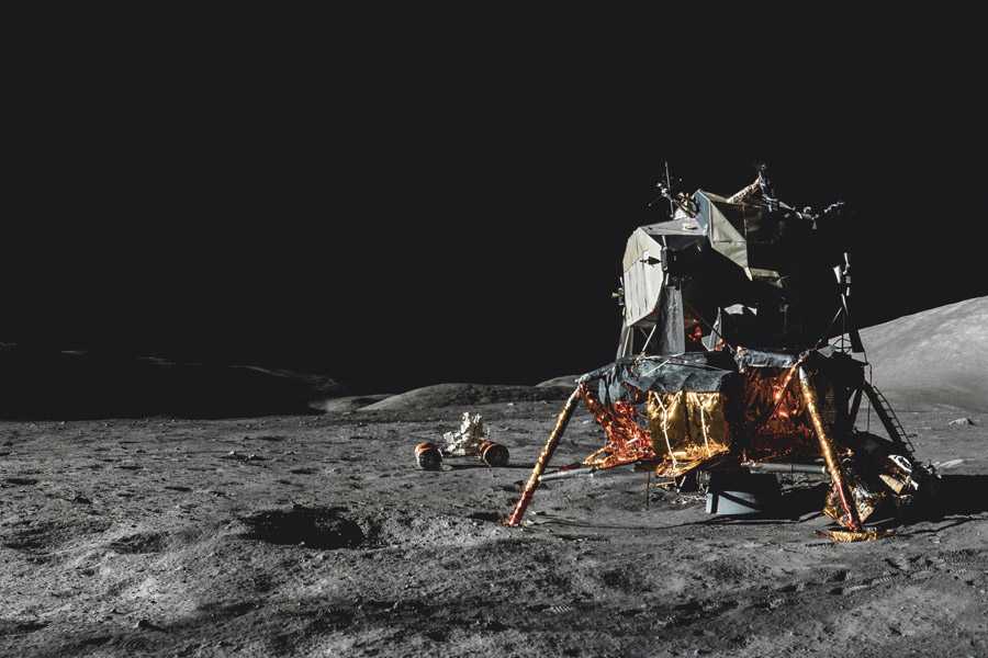 Путь длиной в 380 тысяч километров занял четыре дня. На подлёте к Луне, от корабля отстыковался лунный модуль с двумя астронавтами на борту и начал снижение.