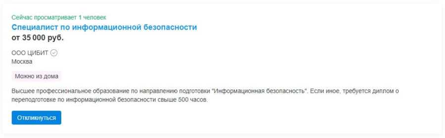 Зарплата начинающих и практикующих специалистов в России сильно зависит от региона, накопленного опыта и выбранной должности. «Безопасникам» в статусе Junior в Москве платят от 35 000 рублей, а в регионах – от 25 000. Среди обязанностей – настройка программного обеспечения и компьютеров внутри сети, администрирование систем и обработка информации, связанной с кибератаками (расследование заражений вирусами, формирование IOC).