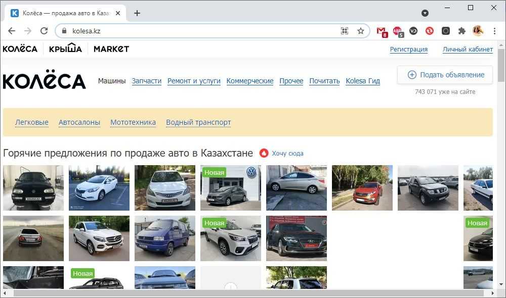 Лидер в Казахстане. Поэтому обычно продавцы и покупатели используют Колёса как основной сайт. Другие посещают как дополнительную возможность рассказать о своём предложении, либо поискать машины, которые по какой-то причине на Колёсах выставлены на продажу не были.