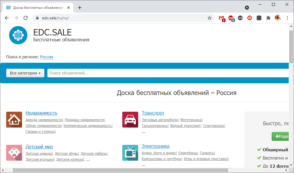 - Бесплатное размещение объявлений без каких-либо ограничений;