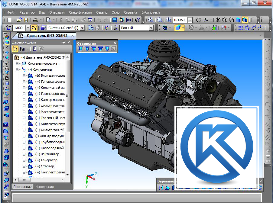 КОМПАС-3D, обычно, идет в комплекте с дополнительными модулями программы для проектирования трубопроводов, электрических схем, пружин, систему прочностного анализа.