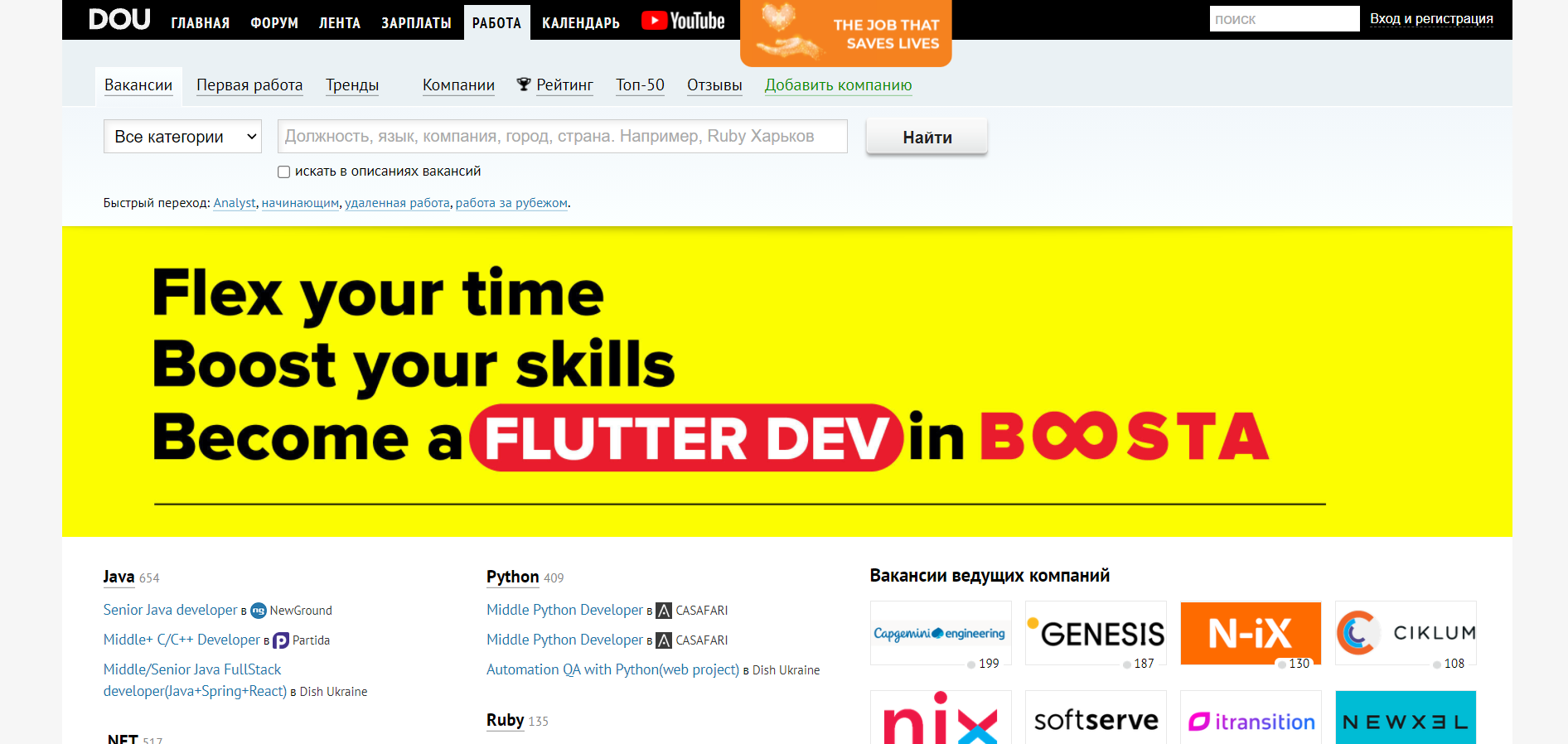 Данный сервис имеет специальный раздел «Работа», где пользователь может просмотреть список опубликованных вакансий как для программистов, так и для нетехнических специалистов, задействованных в IT.