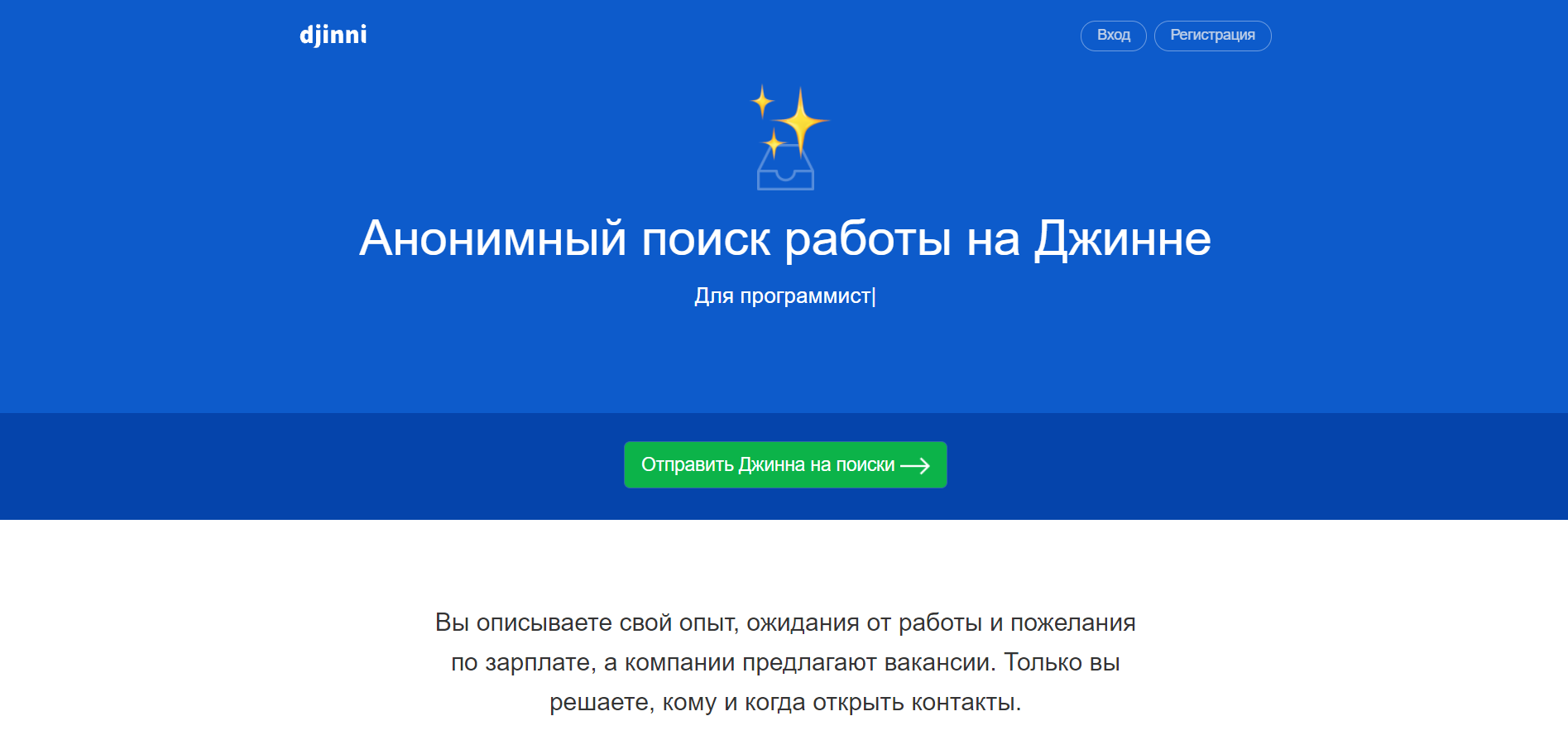 Djinni – ресурс, который позиционирует себя как сервис анонимного поиска работы для программистов, тестировщиков, UI/UX-дизайнеров, специалистов DevOps и всех тех, кто работает в сфере IT. Был запущен в 2012 году в качестве части ресурса dou.ua, однако затем обрел собственный домен.