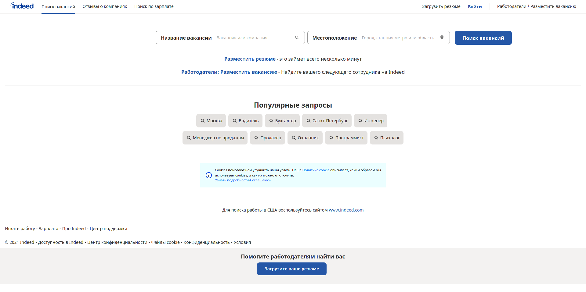 Крупный сайт на русском языке для работы за рубежом. Здесь можно искать работу с привязкой к стране или удаленную.