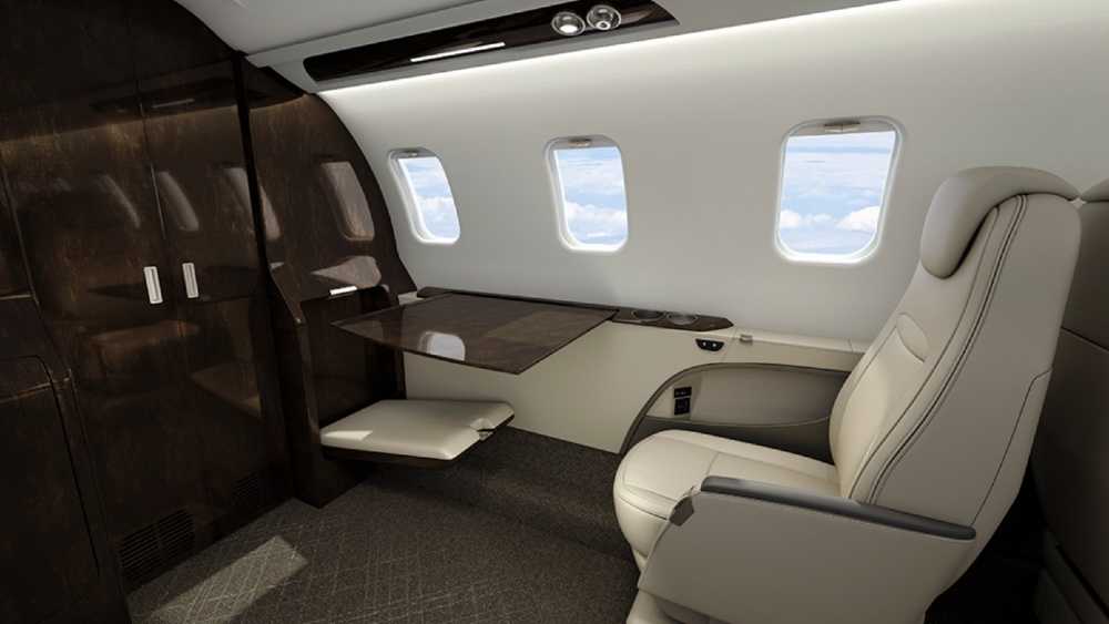 Поперечное сечение салона составляет 1,96 м в ширину и 1,83 в высоту, что делает его самым узким в своем классе. Для кабины длиной в 8,8 м будет доступно множество конфигураций пассажирских сидений до 12 человек (стандартная компоновка рассчитана на 8-9 пассажиров). В носовой части расположен полноценный камбуз, в кормовой — туалет с вакуумным смывом. На камбузе есть раковина с питьевой водой, а также ящики для льда и место для хранения вещей. Установка дополнительной кухонной техники типа конвекционной или микроволновой печи возможна за дополнительную плату. Багажное отделение объемом в 5,5 кубометров будет доступно в полете.