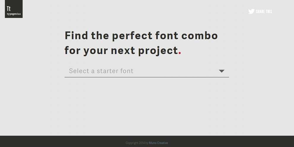 Type Genius – сервис позволяет найти идеальную комбинацию шрифтов для вашего проекта. Выберите основной шрифт, а Type Genius подберет вам подходящий под него по стилю.