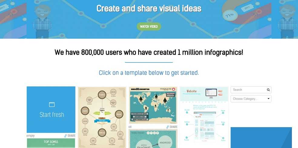 Easel.ly – Очень хороший сервис для создания инфографики. Создан по принципу Drag and Drop, и обладает современным стилем и шрифтами.