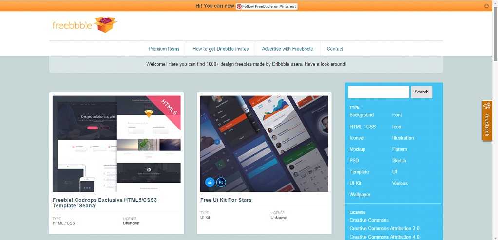 Freebbble – сборник бесплатных элементов дизайна из Dribble