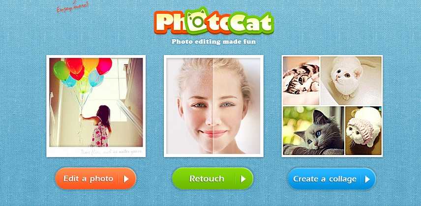 Photocat – онлайн-редактор изображений с богатым функционалом для работы с графикой.