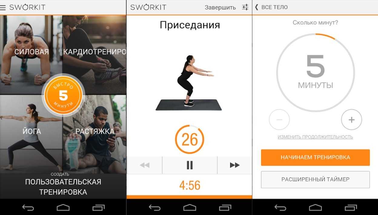Личный тренер в один клик — персонализированные тренировки, предлагаемые сервисом Sworkit: Workouts & Plans, призваны подстроиться под ваш ритм жизни, цели и особенности организма. Выбирайте тип тренировки (силовая, кардио, йога или растяжка), устанавливайте время (от 5 до 60 минут) и следуйте инструкциям спортсмена, который продемонстрирует комплекс упражнений. Приложение прекрасно еще и тем, что учитывает ваше состояние здоровья. Например, если у вас больное колено или слабый вестибулярный аппарат, сервис подберет для вас оптимальные упражнения. А их в библиотеке приложения порядка 200!