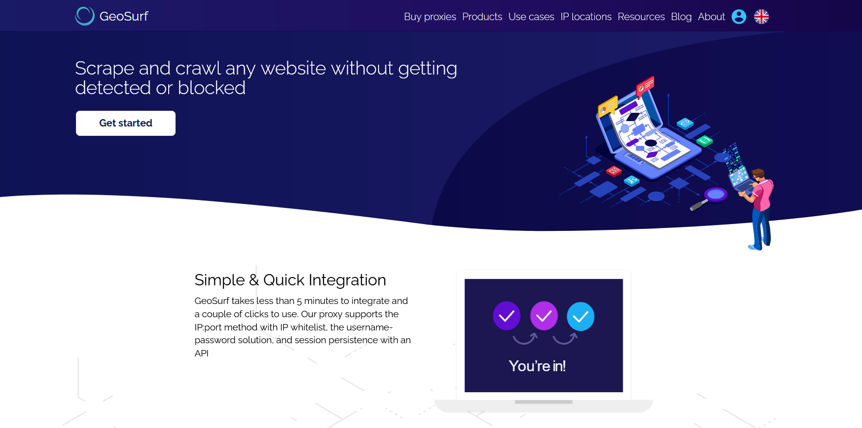 Geosurf — один из старых игроков на рынке прокси. По производительности Geosurf не уступает Bright Data. Однако диапазон прокси-серверов значительно меньше.