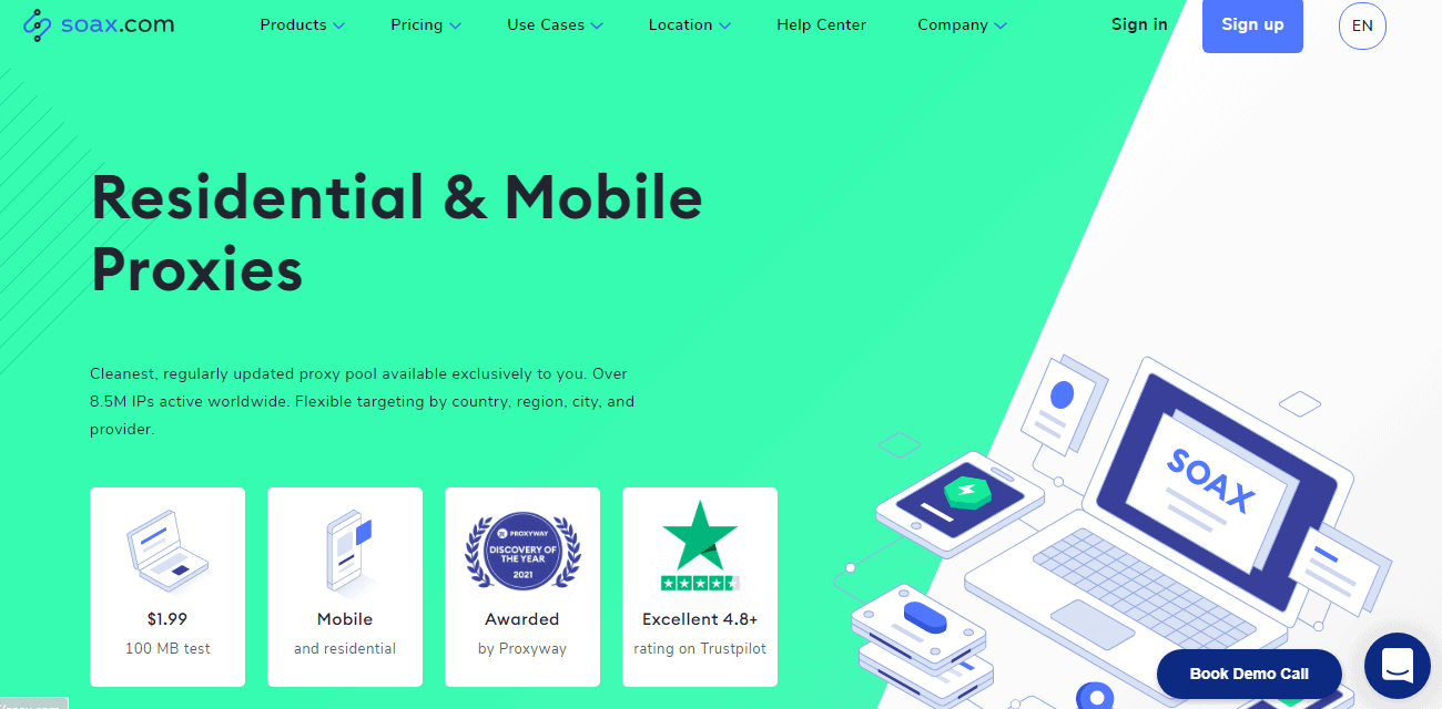 В отличие от Luminati, которая прозрачна в отношении размера своего мобильного пула, Soax не упоминает общее количество IP-адресов, которыми они владеют. Их IP-адреса имеют двойное назначение: мобильный и Wi-Fi. Soax — поставщик незаметных мобильных прокси.
