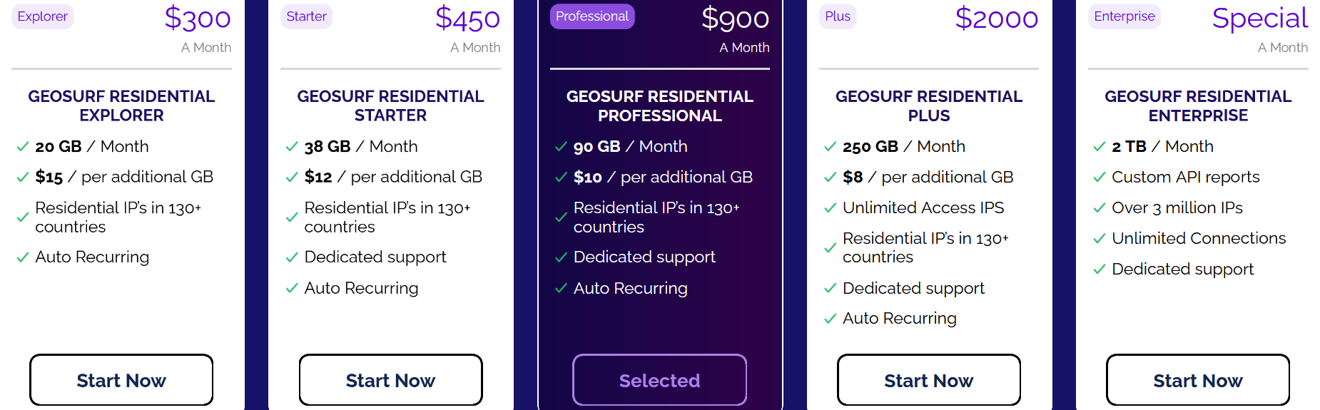 Они предоставляют один из самых гибких вариантов оплаты с доступными ежедневными, еженедельными и ежемесячными пакетами. Хотя их программы легко адаптируются, они могут быть довольно дорогостоящими — даже дороже, чем у Luminati.