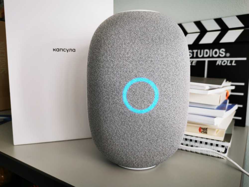 В смарт-колонку интегрирован музыкальный сервис «VK Музыка». Есть поддержка Spotify Connect. С помощью этой функции Капсула управляет музыкой из вашей учётной записи Spotify. Что касается самого девайса, то оно имеет стильный внешний вид, светодиодную подсветку в форме кольца и сенсорное управление. Разместить гаджет можно как в домашнем интерьере, так и в офисе. За качество звука отвечает один низкочастотный и два высокочастотных динамика общей мощностью 30 Вт. Подключение и настройка колонки осуществляется через Wi-Fi и мобильное приложение Маруся.