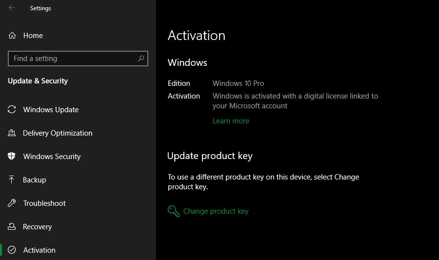 Перейдите в Настройки> Обновление и безопасность> Активация, чтобы проверить, активировали ли вы Windows. Если да, то все готово. В противном случае вам нужно будет либо войти в свою учетную запись Microsoft, либо ввести лицензионный ключ.