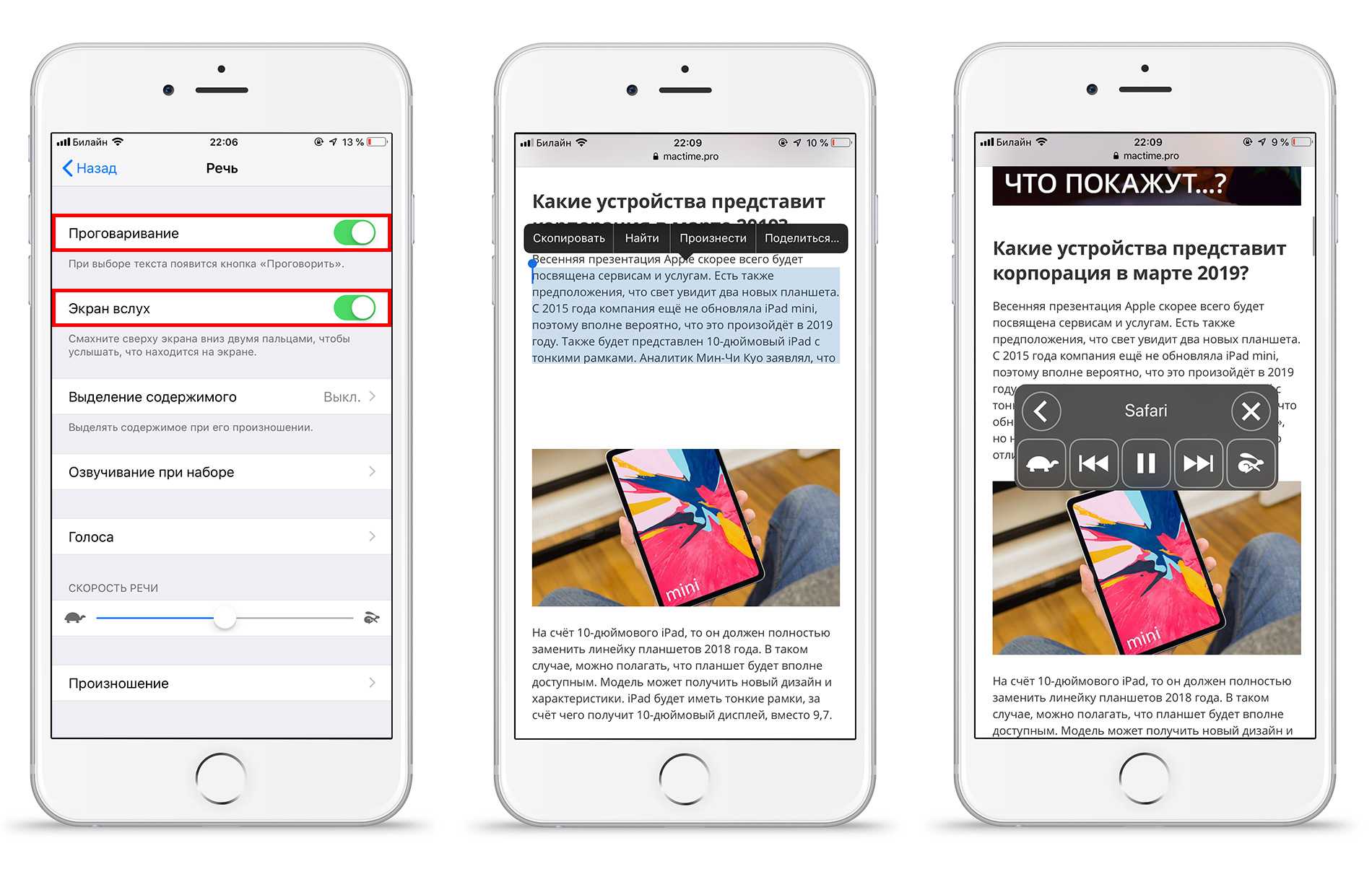 И последняя в сегодняшней подборке полезная функция смартфона от компании Apple — это проговаривание текста с экрана. Для активации этой функции следуйте простым советам: