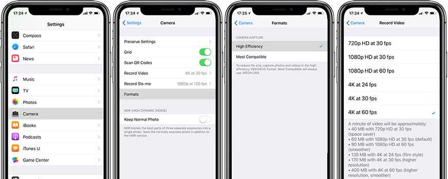 Шаги для записи видео в 4K с частотой кадров 60 FPS на iPhone 8/8 Plus и iPhone X