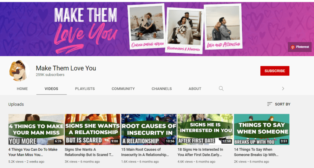 An example channel is called Make Them Love You. They talk about different aspects of love and relationships.