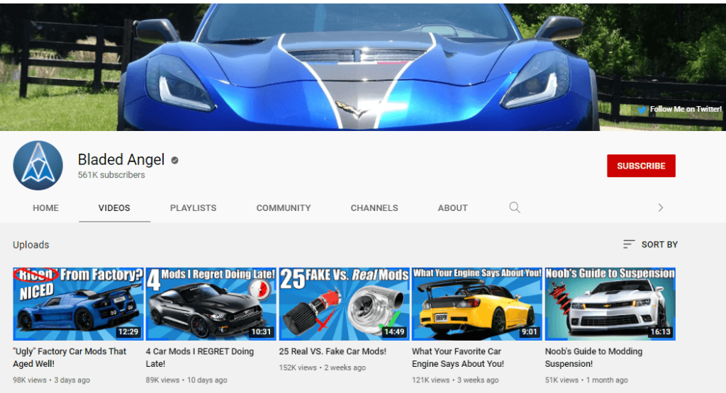 Cars is a popular YouTube niche with a big earning potential. You can either talk about cars like this channel, Bladed Angels.