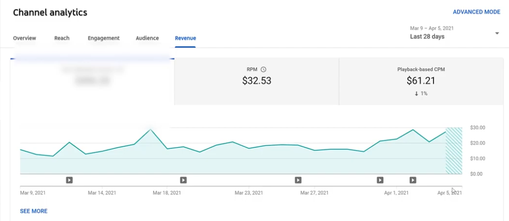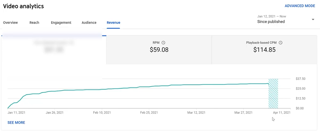 For example, this video on one of my channels has a super high CPM at over $114.
