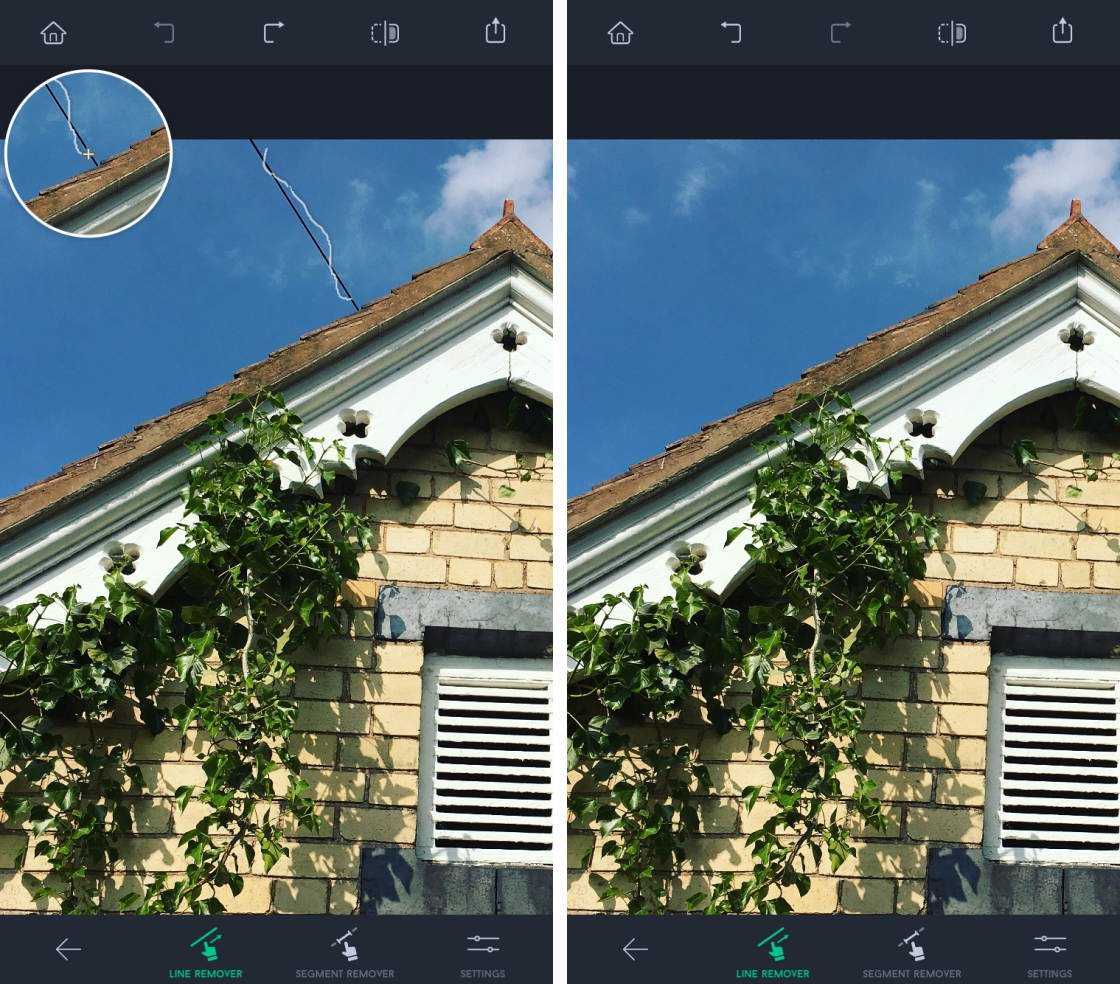 «Линии» — высоковольтные провода часто портят композицию, поэтому в TouchRetouch для них сделали отдельный инструмент. Все провода обводить не нужно, достаточно просто выделить небольшую область, а остальные провода приложение распознает само.
