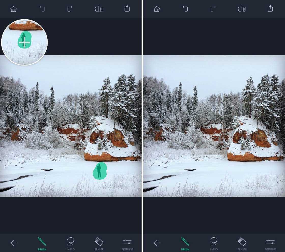 It has a good choice of masking tools for selecting different kinds of subject. You just use your finger to select the area you want to remove.
